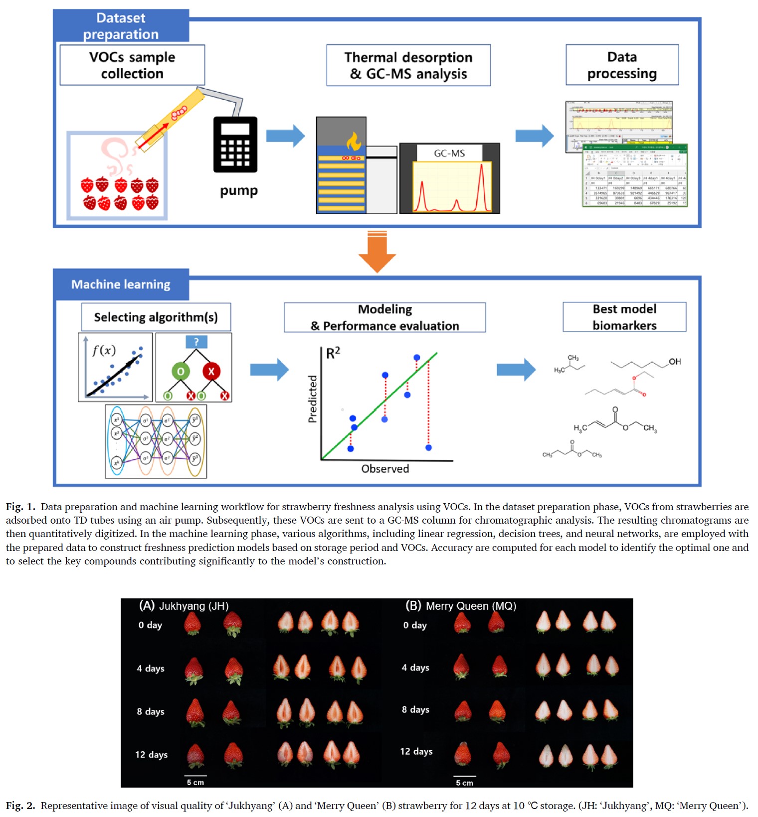 한빛사 논문 (Machine learning for storage duration based on volatile organic compounds emitted from 'Jukhyang' and 'Merry Queen' strawberries during post-harvest storage)