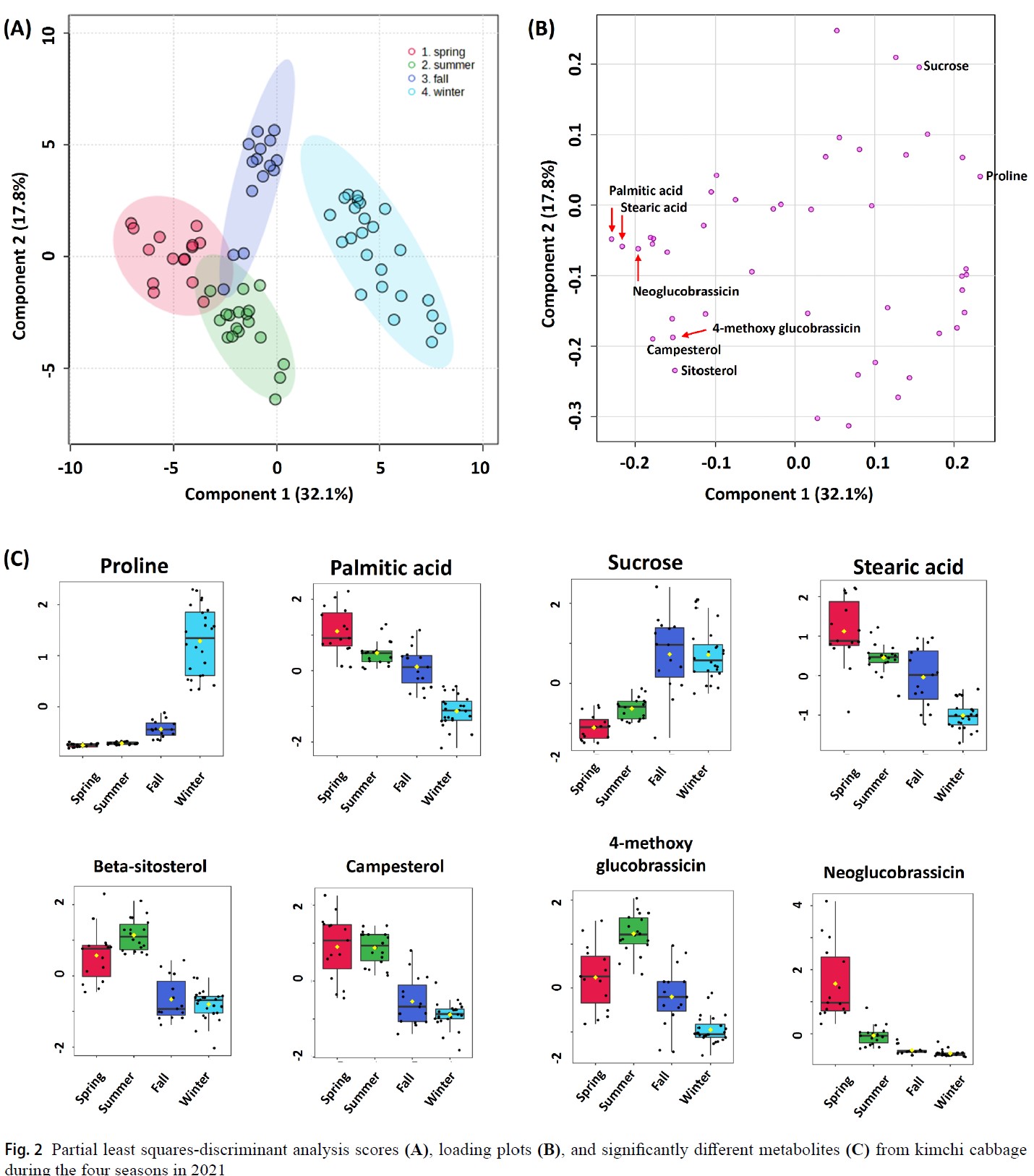 Cabbage is the main ingredient in kimchi, and the average per capita consumption of kimchi by Korean adults is about 35 kg per year. To meet this demand, cabbage is grown year-round. However, although consumers expect a consistent taste, the taste of cabbage varies with the seasons due to different growing environments. We were the first to profile the key differences in cabbages grown in each season through metabolic analysis.